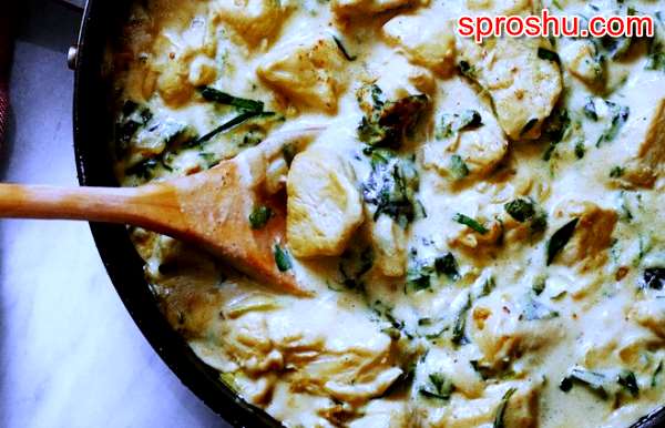 Сливки бывают разной калорийности от 10-60%. 10 процентные подойдут для приготовления диетической куриной грудки. Калорийность будет 160-180 ккал на 100 грамм готового продукта.Зависит от количества лука, а если добавить воды, калорийность готового блюда уменьшится. На столовой ложке растительного масла обжаривает лук (одна средняя луковица), добавляем одну крупную куриную грудку, порезанную кусочками, заливаем 100 граммами сливок, солим. Можно добавить воды до уровня продукта. Закрываем крышкой, тушим 25-30 минут.