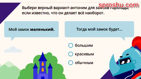 В новой игре в Олимпиаде по русскому языку №Заврики" для учащихся второго класса нужно составить пары слов антонимов, относительно архитектурного сооружения: замка.