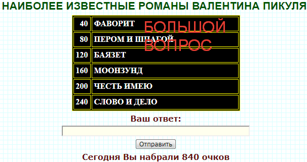 Слово и дело - занимает произведение завершающую строчку и зачисляет максимум 240 очков.
