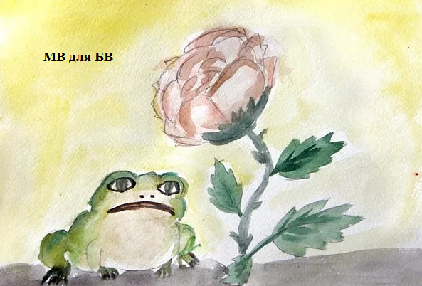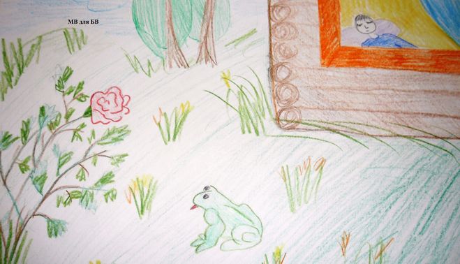 Можно взять за сюжет рисунка цветник, где распустилась роза и жаба, которая мечтала съесть розу и предпринимала попытки это сделать: