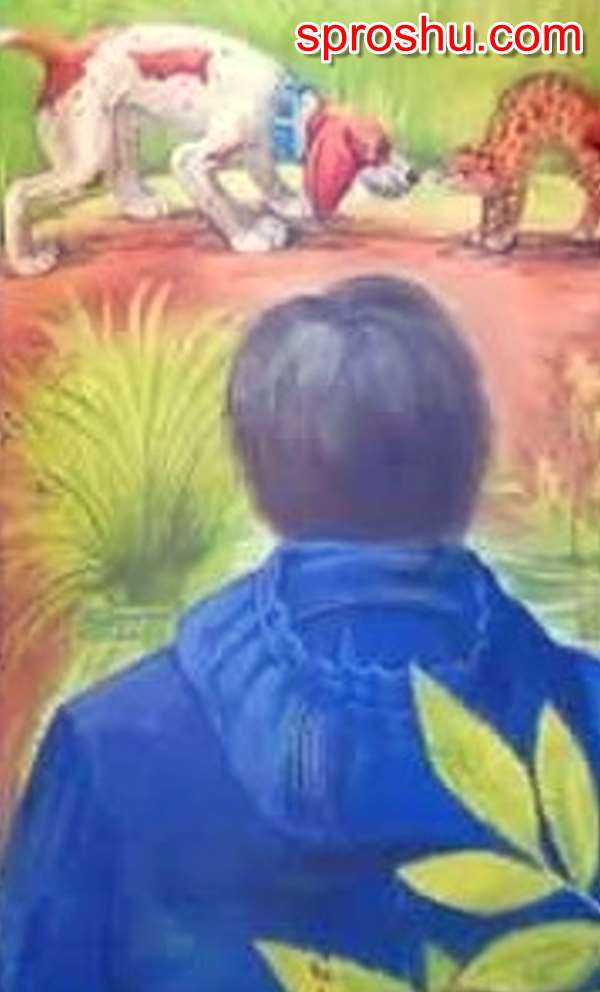 Когда же охотник догнал их, то увидел, что они стоят друг против друга и драка неминуема.