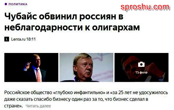 Почему наше "инфантильное общество" до сих пор не удосужилось сказать спасибо" бизнесу и Чубайсу лично?