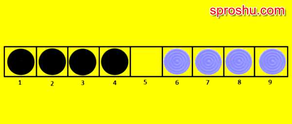 Итак всего за 39 ходов можно переставить местами белые и черные шашки.