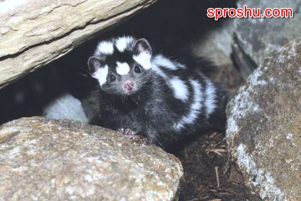 Этот зверек относиться к хищникам и его различают только два вида , первый вид достигает вес максимум 1 кг и имеет название пятнистый а второй является фактически гигантом и достигает вес до 5 кг и имеет название свинорылый .Так же особый признак этого зверя это его аромат .Ареал их распространения это Канада, Коста-Рика, Аргентина ,Южная Колумбия. Ведут в основном ночной образ жизни питаясь змеями , птичьими яйцами, насекомыми , так же едят и растительную пищу .Период гона у них начинается весной очень рано и имеет продолжительность три месяца. Так же у них есть интересная особенность в защите от хищников ,они начинают топтаться на земле при этом распушив хвост , потом они если это не действуют , выпускают струю из под хвоста ,которая обладает едким и стойким запахом и этим способом себя защищают от врагов . Название этого зверька-скунс .