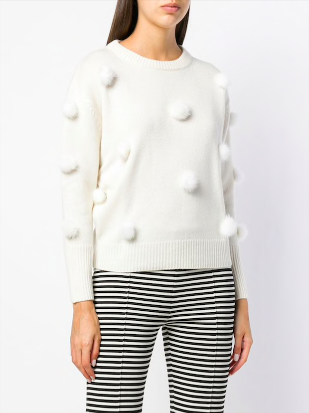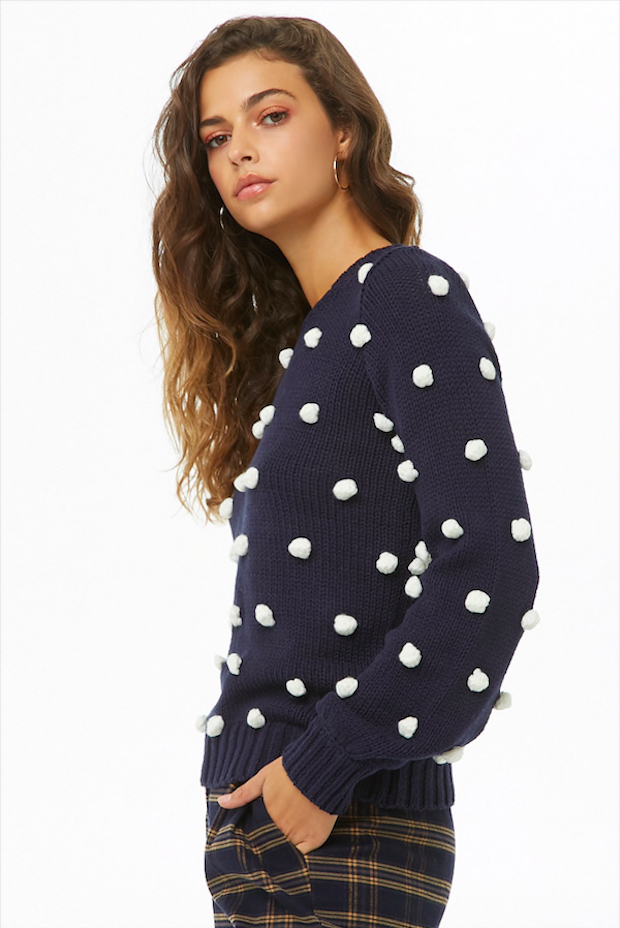 Облачившись в такой, невероятно модный сейчас свитер, вы будете в этом сезоне просто на высоте! Только он должен быть обязательно фактурным, а помпончики, как раз и напоминающие воздушные зёрна кукурузы - выпуклыми.