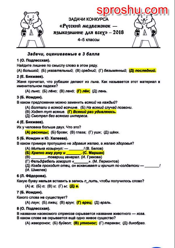 Какие задания к Олимпиаде Русский Медвежонок 4 класс 2018?
