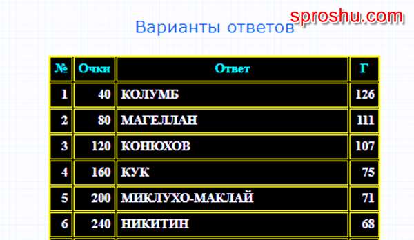 У каждой эпохи свои герои, это в полной мере относится и к заданному в игре 100 к 1, вопросу про самого известного путешественника. Отвечали люди в декабре 2018 года так: