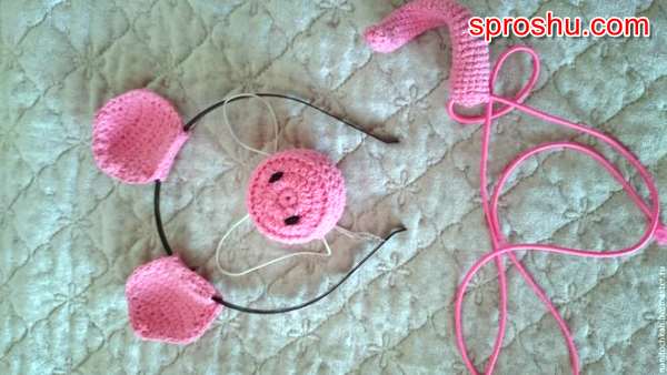 Хвостик сделать очень легко - из розовой ткани или фетра вырезать полоску, загнуть и зафиксировать нитками или клеем на сгибе.