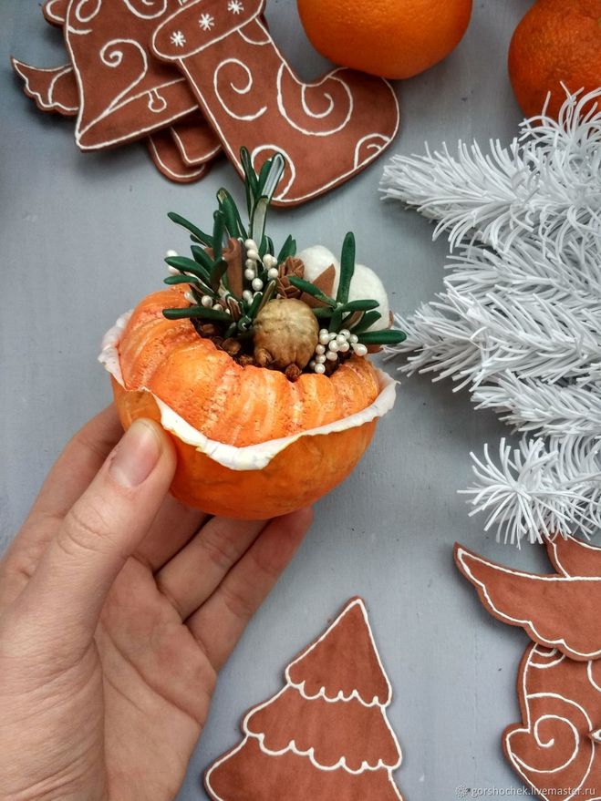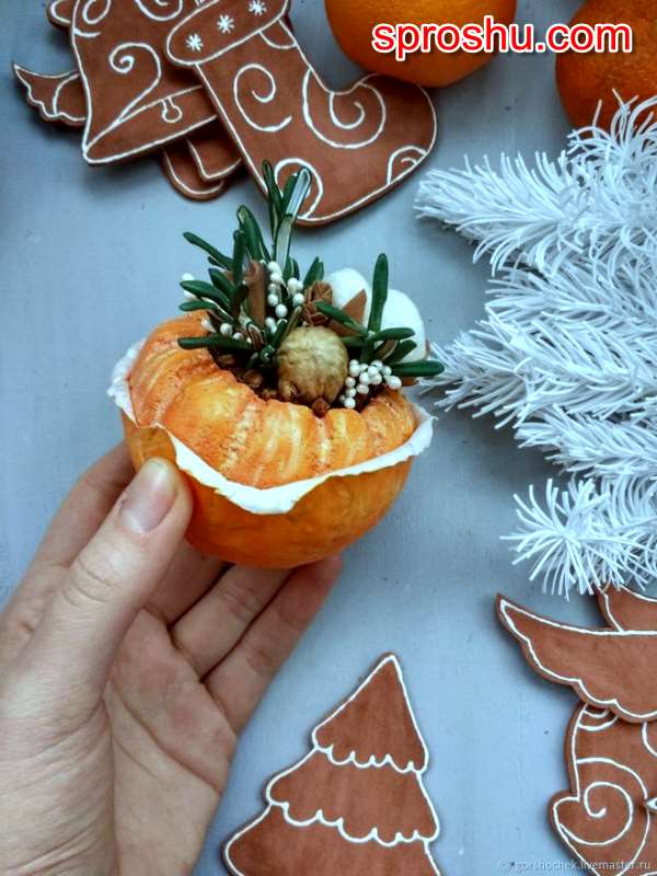 На мой взгляд, мандарины чистить не нужно, их достаточно просто помыть. Если мандарины долго лежат без кожуры, они засыхают. Если все таки есть желание последовать совету соседки, то из мандарин можно сделать интересные композиции. Например, такие: