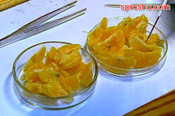 Белые точки внутри мандаринов, скорее всего могут свидетельствовать о заселении мякоти плодов плесневыми грибками. Возможно это произошло по причине неправильного хранения, например оттаивания после заморозки.