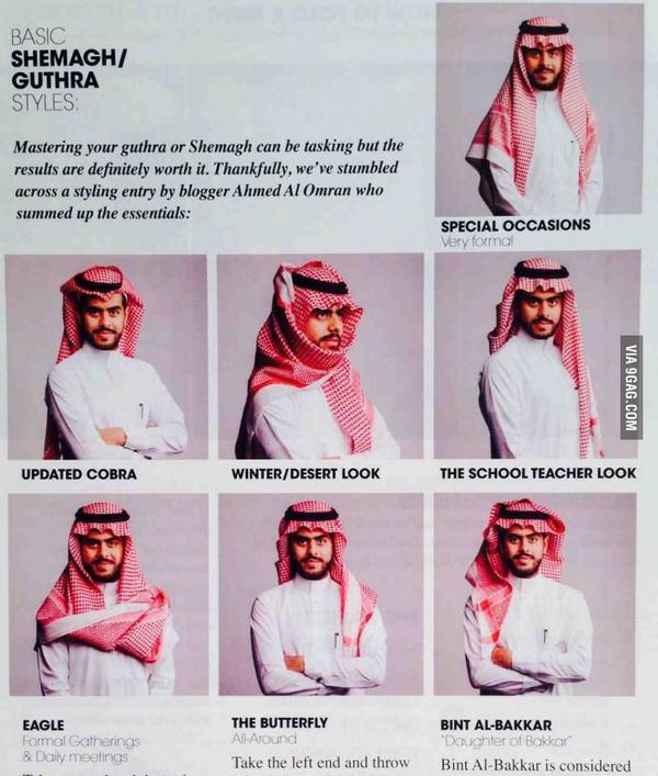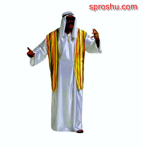 А насчет головного убора все проще. Возьмите любую готовую арафатку - относительно недавно они были модны среди молодежи, или же простой белый платок. Это заменит шимаг/куфию. А шерстяное тугое кольцо на голове (и‘каль) можно заменить любым шнурком. Ну и пару вариантов, как носить: