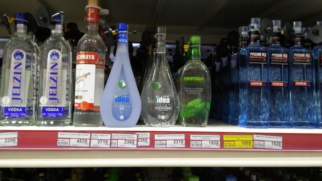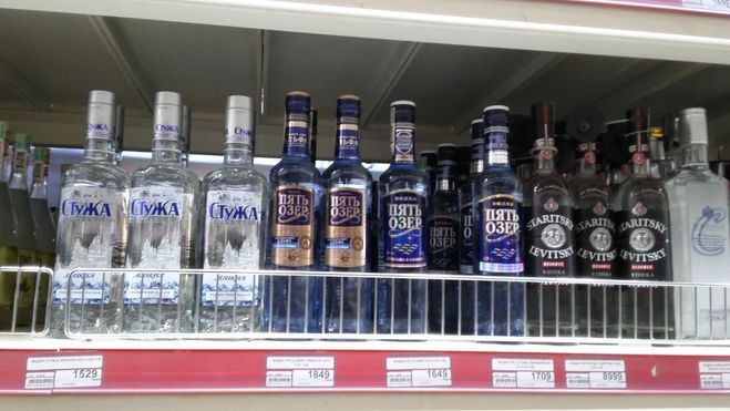 Чтобы сравнить с российскими ценами, нужно делить примерно на 5,5 -6 м получится цена водки в России..