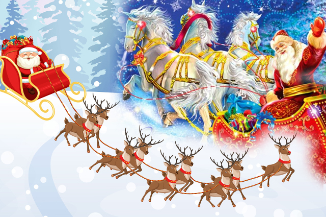 На чем передвигаются Дед Мороз и Санта-Калус?