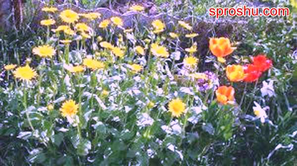 В ландшафтном дизайне дороникум лучше высаживать в групповых посадках в миксбордерах и на клумбах. Прекрасно смотрятся с дороникумом такие садовые цветы, как: брунера, тбльпаны и нарцисы, незабудки и мускари.