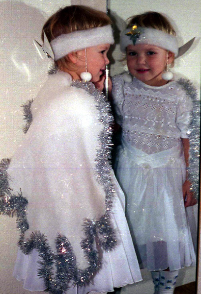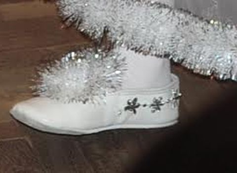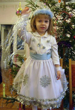 Любое платье можно с помощью мишуры и дождика быстро и просто превратить в новогодний костюм, смотрите способы, как можно пришить мишуру к платью, чтобы получился костюм. Вариант с юбкой, обшитой мишурой по кругу. Название костюма придумываем в зависимости от цвета платья. Голубое платье с синей мишурой костюм Мышки, белое платье с синей или белой мишурой это наряд Снегурочки, Снежинки, Метелицы, Зимы. Платье зеленого цвета легко сделать в костюм Елочки с помощью зеленой мишуры. Если пришить желтую мишуру на розовое платье или синеет, то получим костюм Новогодней Игрушки. Дополнить наряд ободком с усиками или накидкой.