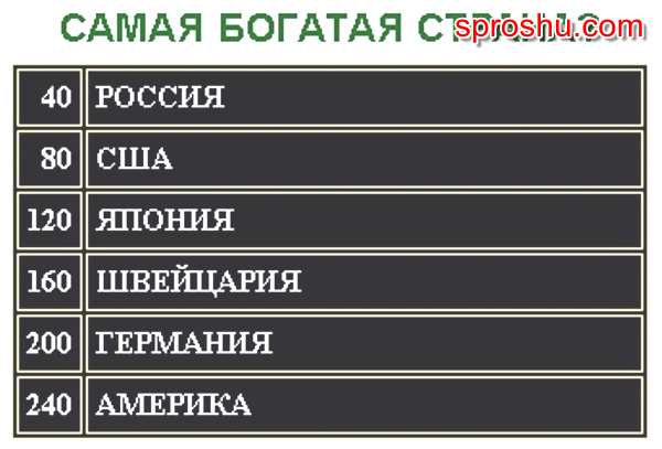 100 к 1. Самая богатая страна (интерактивная игра)?