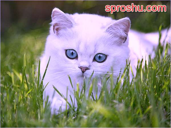 Милая мордочка, неправда ли? А вот глазки голубые, на самом деле, как считают знатоки-кошатники, у котиков бесцветны. Отчего же это? Выходит, что связано это с геном альбинизма: в голубых глазах кошки в радужке нет пигмента и они лишь кажутся нам голубыми из-за преломления цвета в шаре - форме кошачьего глаза.
