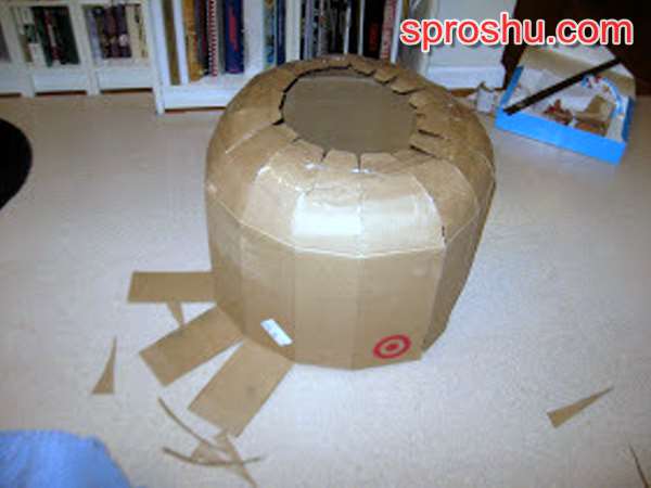 Придать округлую форму шару можно, согнув большую полосу картона по линиям сгиба, начерченным с равным шагом, например десять сантиметров.
