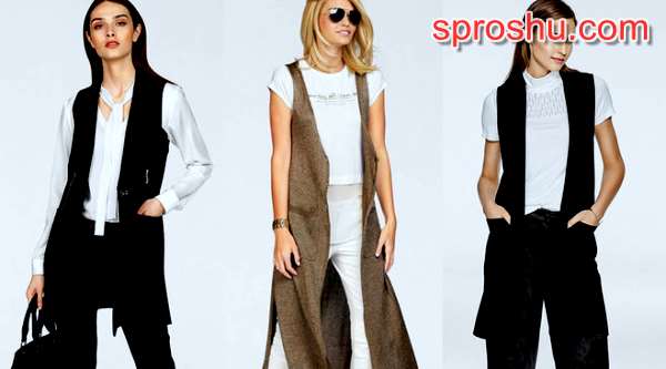 Низ: в основном брюки. В зависимости от фасона жилета, его можно попробовать сочетать с узкой юбкой (тут желательно чтоб длина жилета была не длиннее юбки) и чтоб жилет был не широкого кроя.