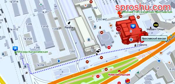 - пригородным электропоездом от Белорусского вокзала до ж/д станции "Каланчёвская". Один из самых быстрых вариантов, если не будет перерыва в электричках. Схему прохода от ж/д станции "Каланчёвская" до Ярославского вокзала привожу: