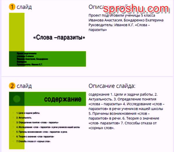 Основная информация которая должна содержаться в Проекте о словах-паразитах, это -