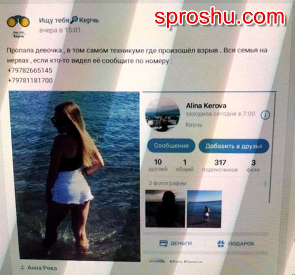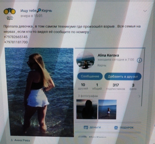 Алина Керова из Керчи - это одна из жертв, которые погибли в результате нападения на политехнический колледж в Керчи 17.10.2018. С самого начала в день этой страшной трагедии Алину Керову уже объявили в розыск.