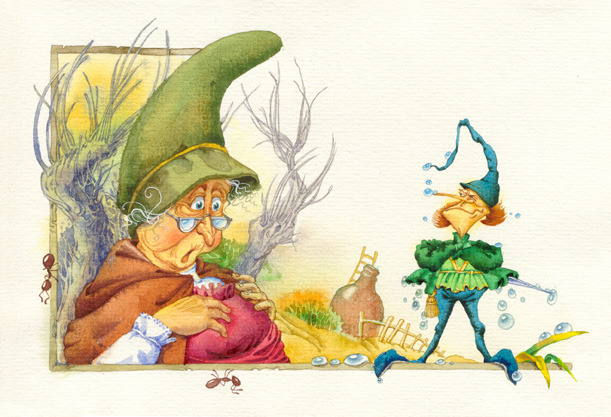 Как нарисовать водяного из сказки Женщина, которая жила в бутылке?
