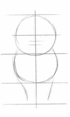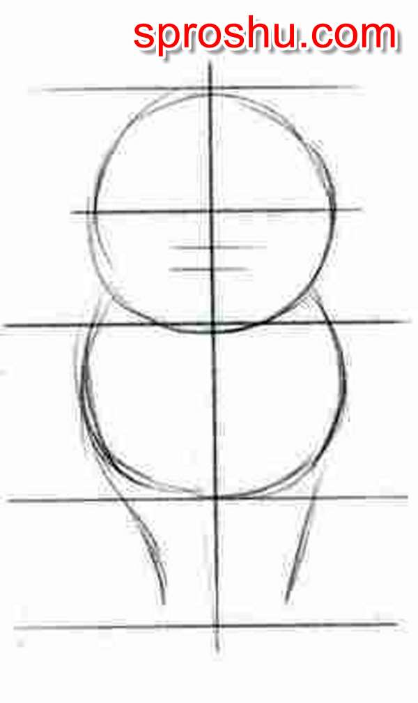 сначала прорисовываете контуры головы, туловища и конечностей: