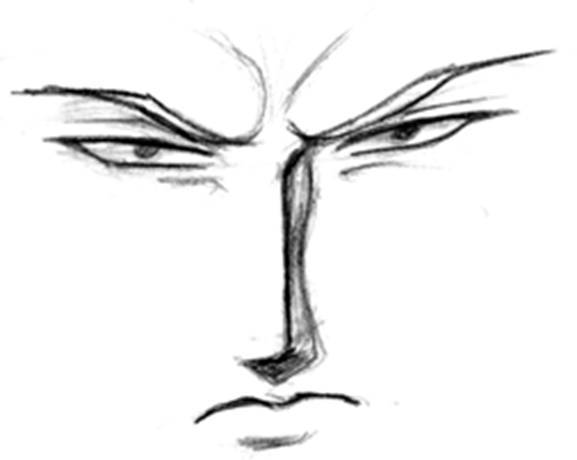 Лицо должно быть недовольным, ведь старушка приходила к нему несколько раз. На лице должно быть изображено недовольство. Поэтому уделите внимание прорисовке взгляда, брови немного сдвинте: