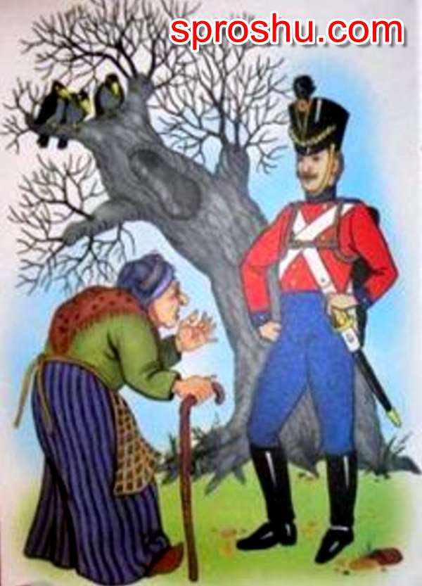 Сказка - легенда "Солдат и смерть" повествует о солдате, который возвращается со службы домой, нищая отдает ему мешок, по пути он освобождает дом трактирщика от чертей, затем смерть его забирает на небеса, затем солдат обхитрил смерть, вернулся на землю.