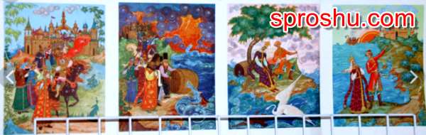 Описание и план. Брак с третьей сестрой. На второй картинке засмолили царицу в бочку, а бочку выбрасывают в открытое море. Царевна-лебедь: встреча, и царица с сыном выбираются из бочки. Таинственный остров - царь град.