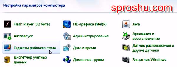 1) Сначала зайдите в "Пуск" -> "Панель управления" и выберите пункт "Гаджеты рабочего стола".