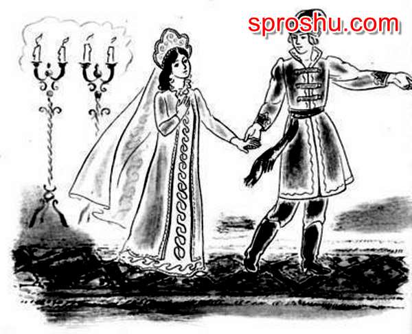 А дальше девушка заметила рядом с собой молодого человека, который пояснил ей, что он не медведь, а князь. И тут же князь предлагает девушке стать его женой.