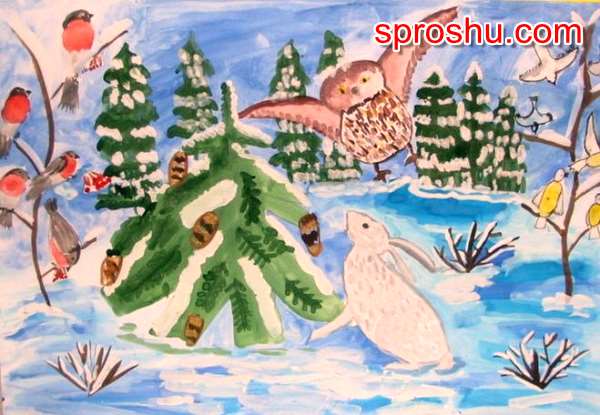1) Рисунки на тему зимней природы, наблюдений за растениями зимой, а также животными и птицами в лесу или в парке.