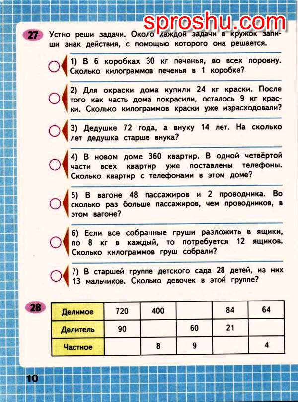 Математика, Волкова 4 класс, страница 10, ответы на задачу № 27. Знаки действия, которыми решаются задачи: