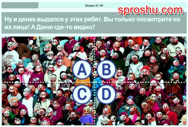 Где же наш малыш Даня? Какой ответ на 8 вопрос викторины (см)?