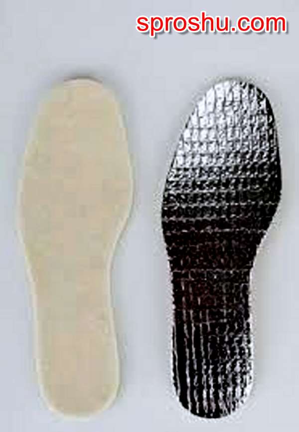 Если вам нужны стельки именно с фольгой, купите в строительно магазине фольгированный пенополиэтилен толщиной миллиметров десять (можно и тоньше), обведите обычную стельку по контуру ручкой, и ножницами вырежьте стельки из пенополиэтилена. Но я бы предпочел войлочные стельки: они и теплые, и пот впитывают. Хотя вам никто не мешает сложить войлочные стельки и стельки из полиэтилена сэндвичем с фольгой между слоями. При этом войлок положить сверху.