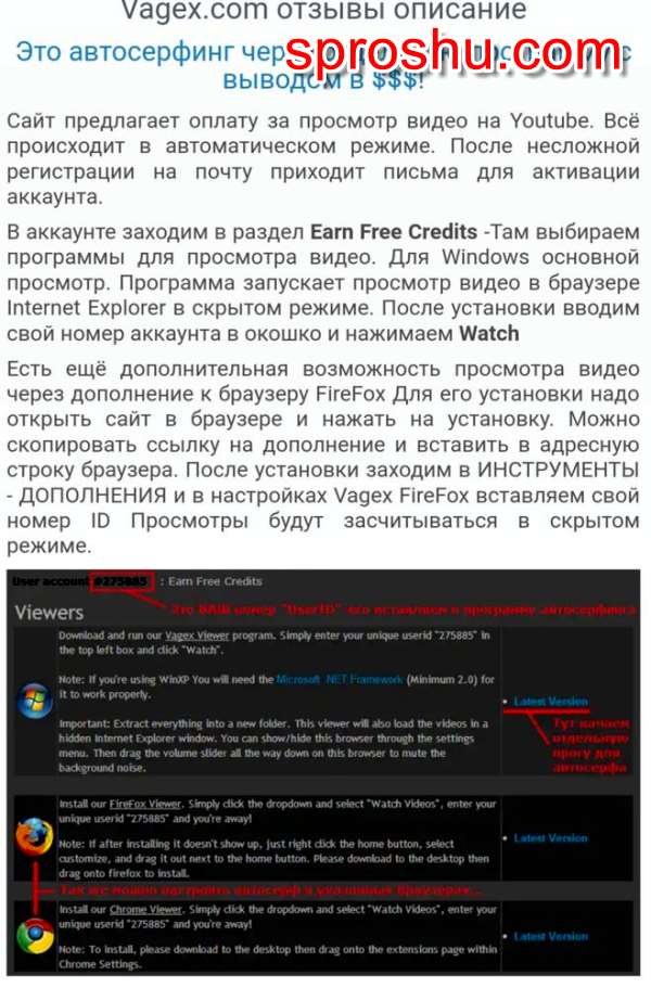 На сайте Vagex.com заработокзаключается в просмотре видео с ютюб через специальную программу, которую надо установить на компьютер. Сайт действительно палящий, оплата производится на Paypal в долларах, минимальная сумма на вывод 10$ .