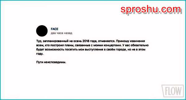Почему рэпер Фэйс отменил концерты осенью 2018?