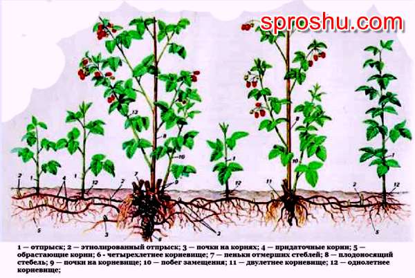 Если сорняков много, то у малины сильнее проявляется ее особенность - разрастание корневой система в стороны с обилием отпрысков. Она ищет лучшие места.