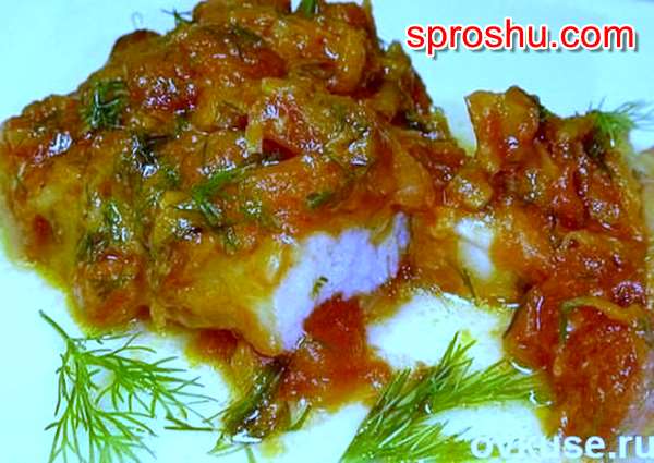 Разогреваю сковороду (с учетом, что ее потом придется ставить в духовку) или казан, наливаю растительное масло и начинаю обжаривать овощи, потом добавляю воду, чтобы она покрыла овощи примерно на два сантиметра, как все это закипит, добавляю соль, перец, лавровый лист, можно добавить готовую приправу для рыбы, помешать и сверху положить очищенный и нарезанный минтай, сверху посыпаю зеленью и чесноком и ставлю в разогретую духовку, но температура не должна привышать 200 градусов. Готовиться в духовке минтай с овощами примерно 20 - 30 минут.