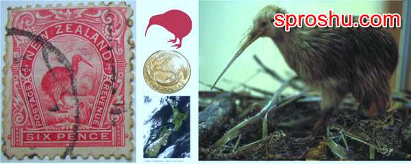 Конечно все сразу подумали о долларе США и ошиблись, потому что речь идет о валюте NZ$, новозеландском долларе, который часто называют по имени своего национального пернатого символа, который является эндемиком для этих мест. Птица представляет собой шарик на двух сильных четырехпалых ногах, а ее происхождение ведут от раскола Годваны. Птица эта не летает, и вероятно поэтому ее название звучит как аПтерикс. Действительно, крылья у нее всего 5 см при общем весе в 5 кг, контраст дополняет узкий длинный клюв в 12 см. А перья скорее напомонают шерсть, птица предпочитает ночной образ жизни. Называется эта пичужка киви.