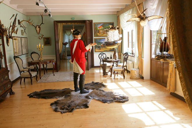 Весь музей состоит из двух-этажного особняка, который наполнен восковыми фигурами и коллекцией из 2000 пивных кружек, самой длинной деревянной тропы из осиновых дощечек - 5,3 км, она тянется до самого моря, а вдоль тропы расположены фигуры из историй Мюнхаузена (зайцы, кабаны, волки, киты).