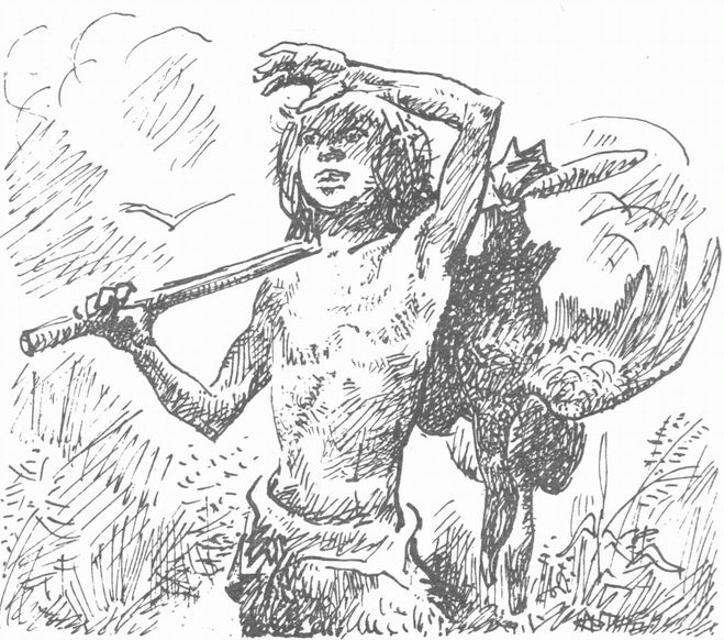 Мальчик по имени Крек. Он самый основной герой книги. Ему приходится быть мужественным и воинственным в свои 9 лет. Безоблачного детства к сожалению у него нет. Ему приходится выживать в непростых условиях первобытного времени, а так же бороться с силами стихии. За свое умение ловить птиц он заслужил уважение в своем племени, а так же его прозвали и "Птицелов".