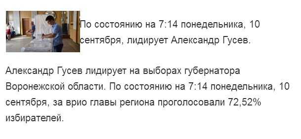 По предварительным данным Александр Гусев уверенно лидирует на выборах. Есть информация, что за врио главы региона отдали голоса очень много избирателей.