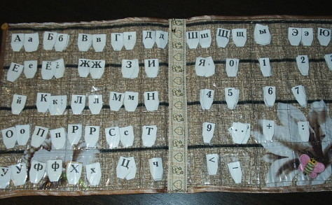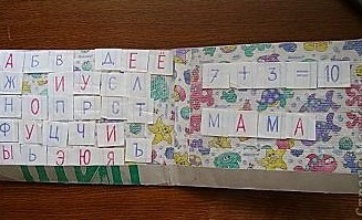 В бытность моего детства, мамы шили форму с множеством ячеек, для картонных квадратиков с буквами и цифрами. Нижний слой из клеёнки и цветной ткани, верхний с ячейками из прозрачной плёнки. Такая формовка легко сворачивалась при надобности в линейку.