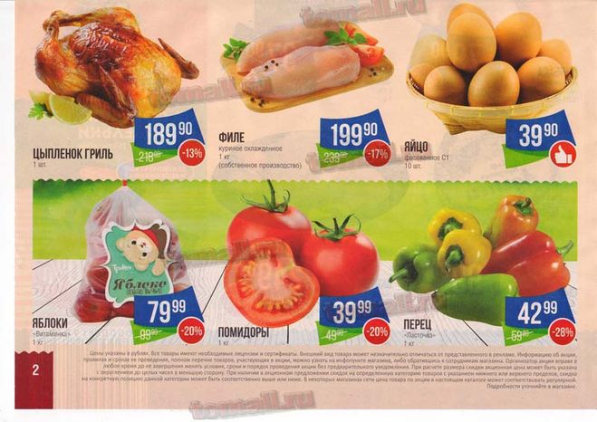 Яйцо фасованное С1 - 39.90 рублей за 10 штук. Яблоки "Витаминка" - 20 % скидка.