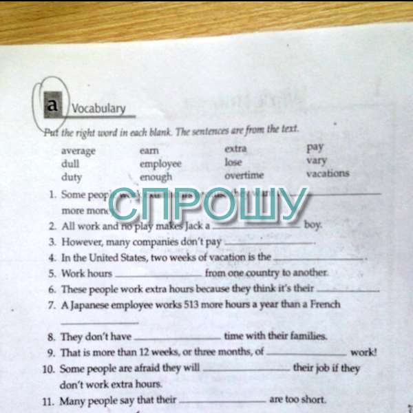 1.earn 2.dull 3.enough 4.average 5.vary 6.duty 7.employee 8.extra 9.overtime 10.lose 11.vacations