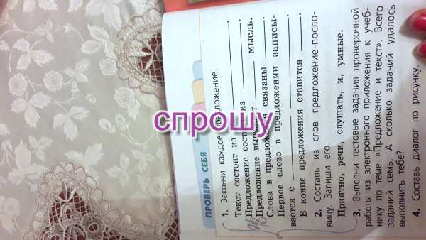 Тект состоит из.....предложение состоит из....предложение выражает .....мысль..слова в пркдложении записываются с....