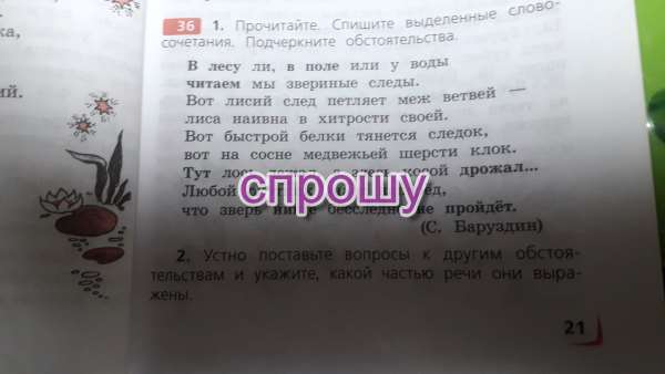 Прочитайте.Спишите выделенные словосочетания.Подчеркни обстоятельства.